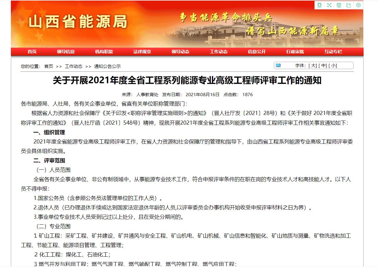 關(guān)于開(kāi)展2021年度全省工程系列能源專(zhuān)業(yè)高級(jí)工程師評(píng)審工作的通知